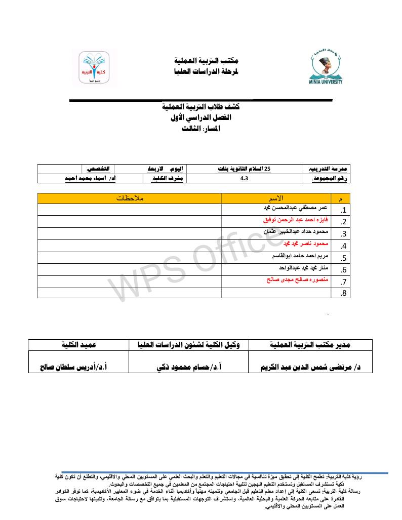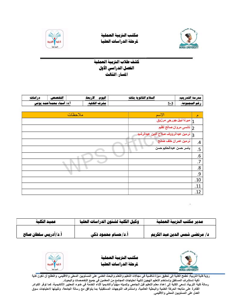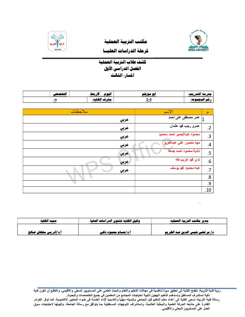 توزيع طلاب الدبلوم العام في التربية ( المسار الثالث) على مدارس التربية العملية للفصل الدراسي الأول 2025 / 2026 وعليهم الالتزام والمتابعة في مدارسهم وفق الكشوف المرفقة من الساعة ٨ صباحا حتى ١٢ ظهرا
