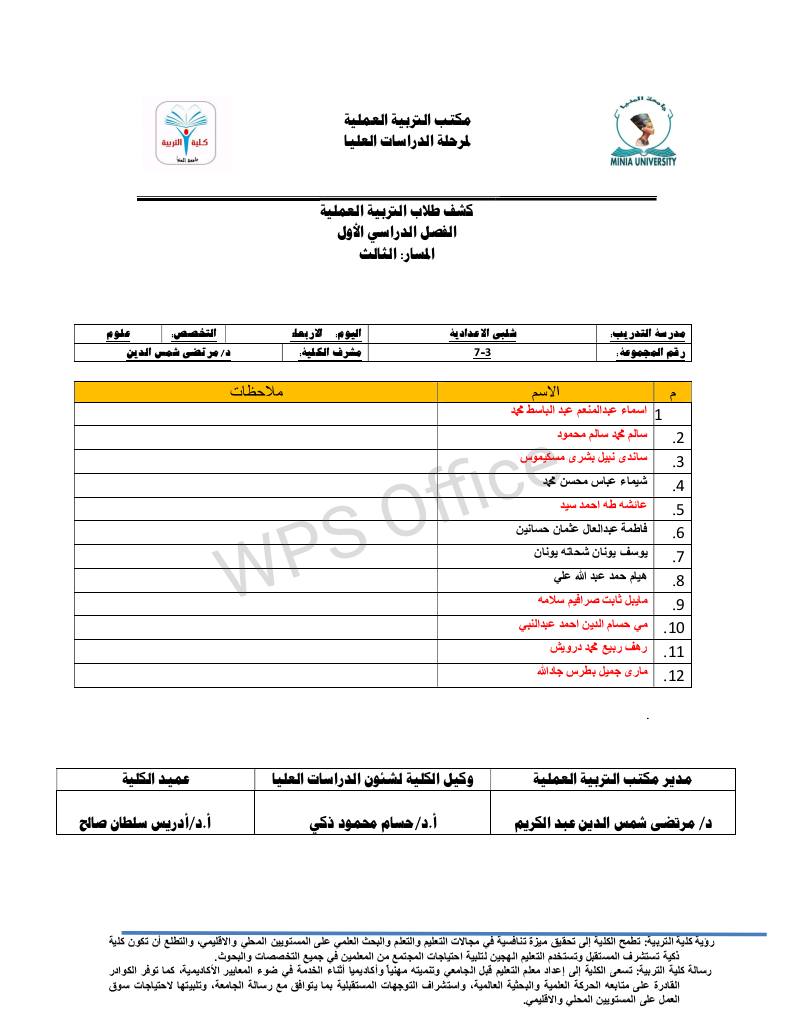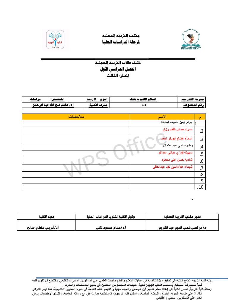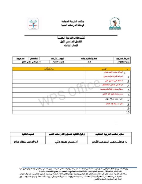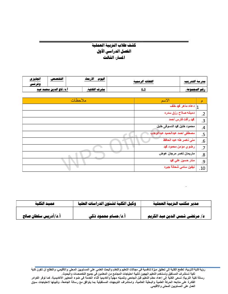 توزيع طلاب الدبلوم العام في التربية ( المسار الثالث) على مدارس التربية العملية للفصل الدراسي الأول 2025 / 2026 وعليهم الالتزام والمتابعة في مدارسهم وفق الكشوف المرفقة من الساعة ٨ صباحا حتى ١٢ ظهرا