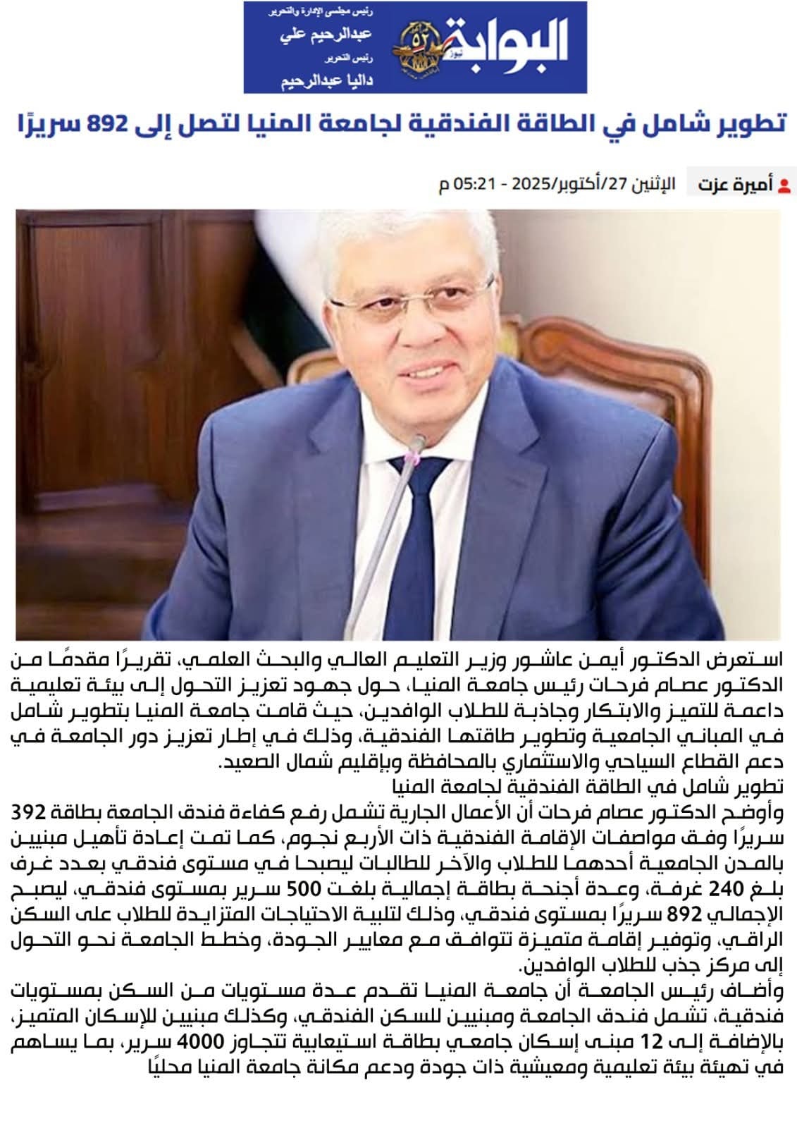 جامعة المنيا في عيون الصحافة