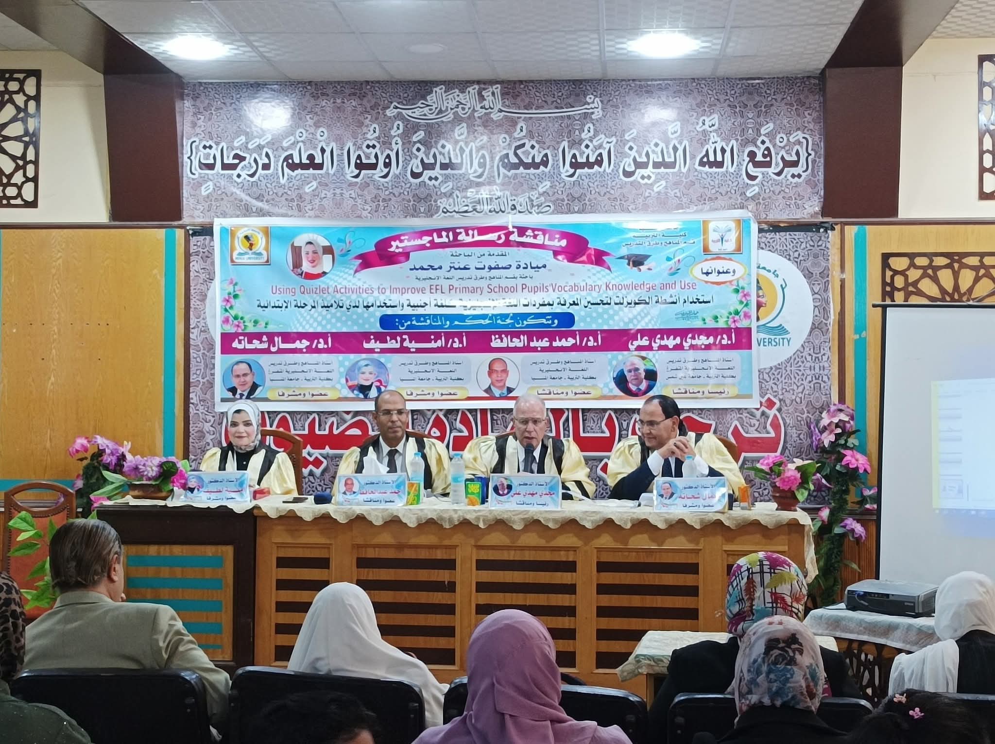 مناقشة رسالة الماجستير المقدمة من الباحثة/ ميادة صفوت عنتر محمد " قسم المناهج وطرق تدريس ( اللغة الإنجليزية)"