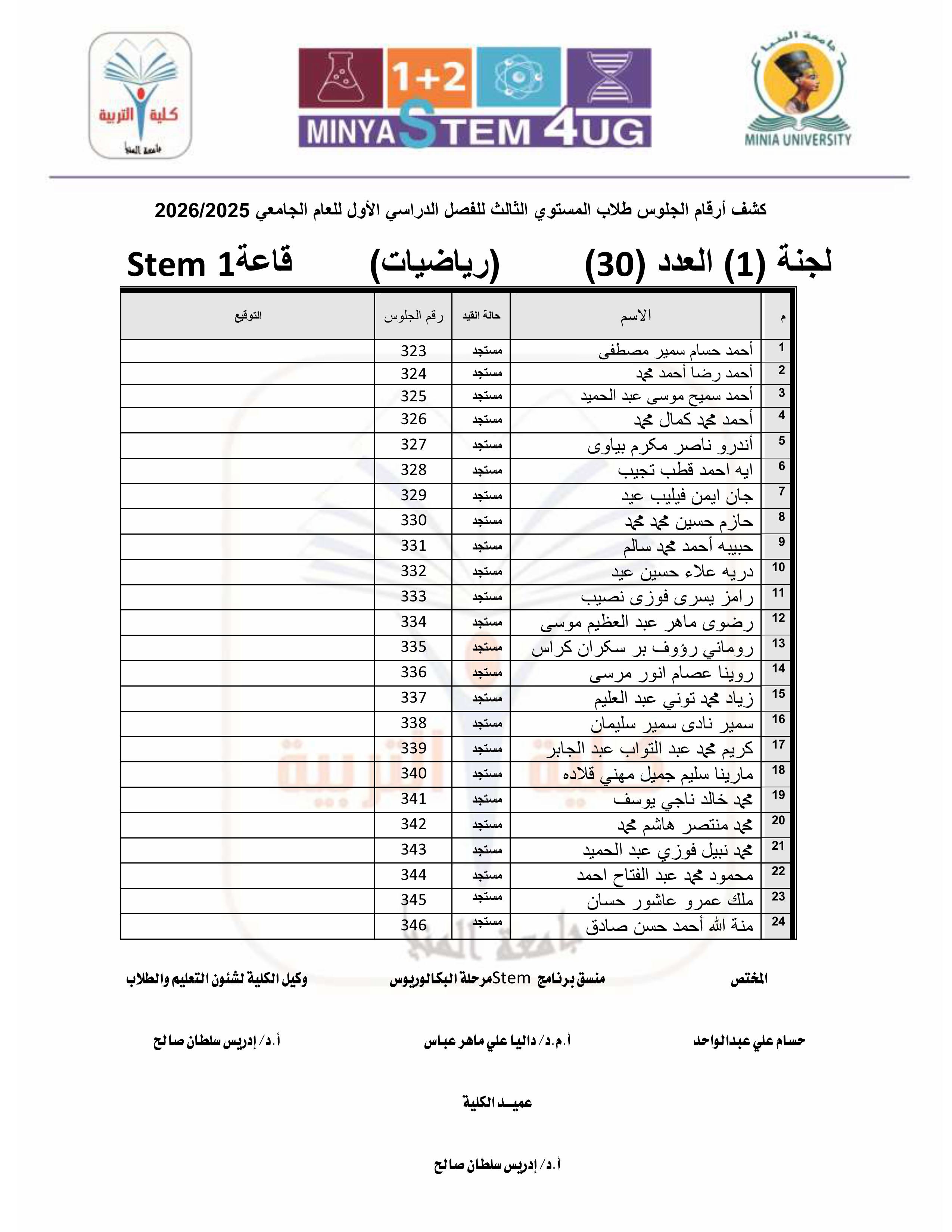 أرقام جلوس وأماكن لجان امتحانات المستوى الثالث STEMرقام جلوس وأماكن لجان امتحانات المستوى الثالث للفصل الدراسي الأول ٢٠٢٥ / ٢٠٢٦م