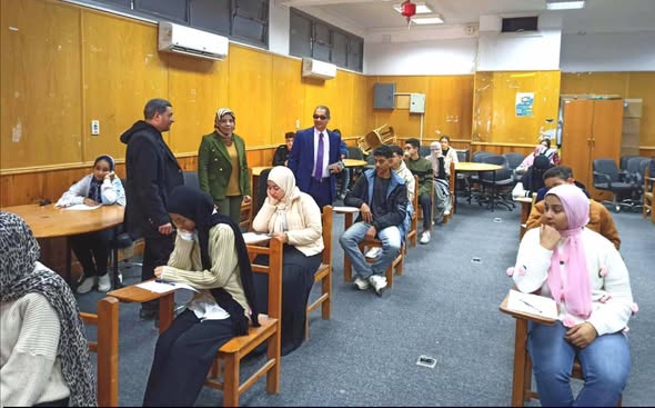 حيث تابع امتحانات الفرقة الثانية وبرنامج STEM بالفترة الصباحية، واطمأن على انتظام اللجان وتوفير الأجواء الملائمة للطلاب، كما تابع امتحانات الفرقة الرابعة ، وبرنامج STEM بالفترة المسائية، مؤكدًا على الالتزام بالتعليمات والضوابط المنظمة لأعمال الامتحانات.