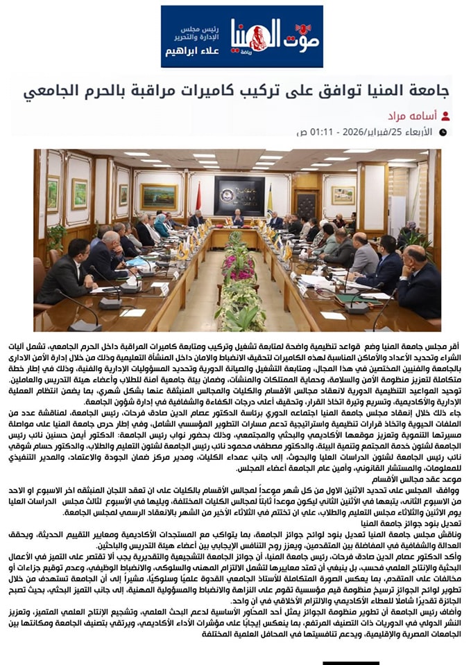 جامعة المنيا في عيون الصحافة