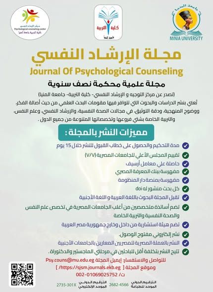 للتواصل والاستفسار: ايميل المجلة Psy.couns@mu.edu.eg