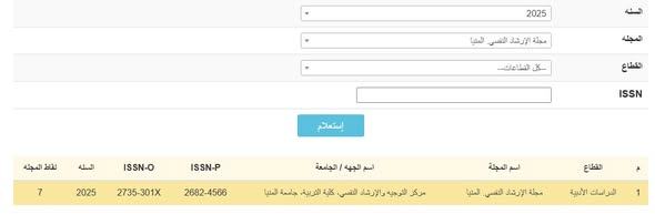 تتشرف *مجلة الإرشاد النفسي* بالإعلان عن استقبال الأبحاث العلمية للمشاركة في *المجلد (12) العدد ( 21) عام (2026م)