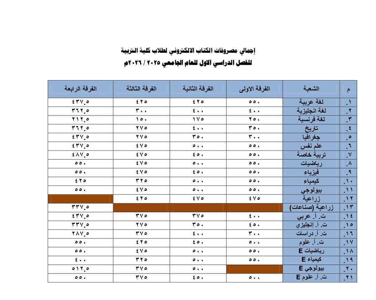 The Faculty of Education publishes E-book fees for the first semester of the academic year 2026/2025. Whereas faculty students can pay online via the following link: