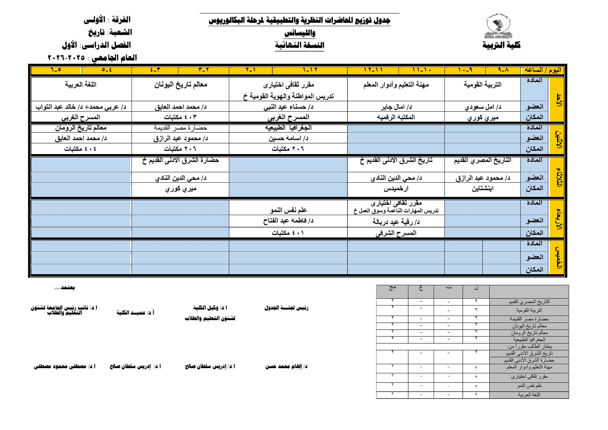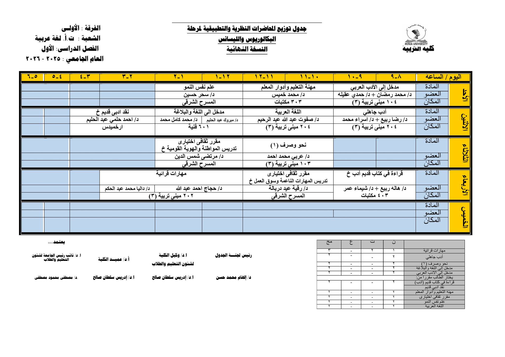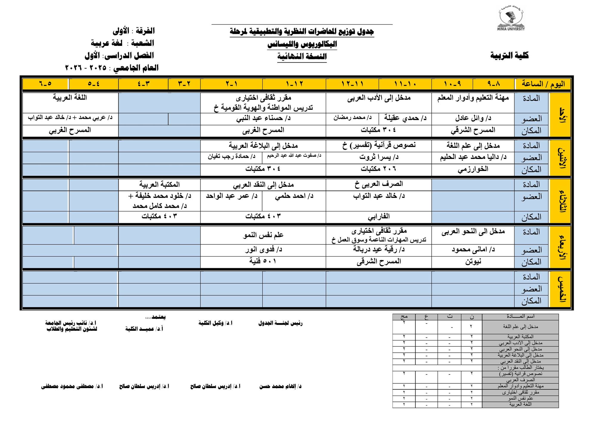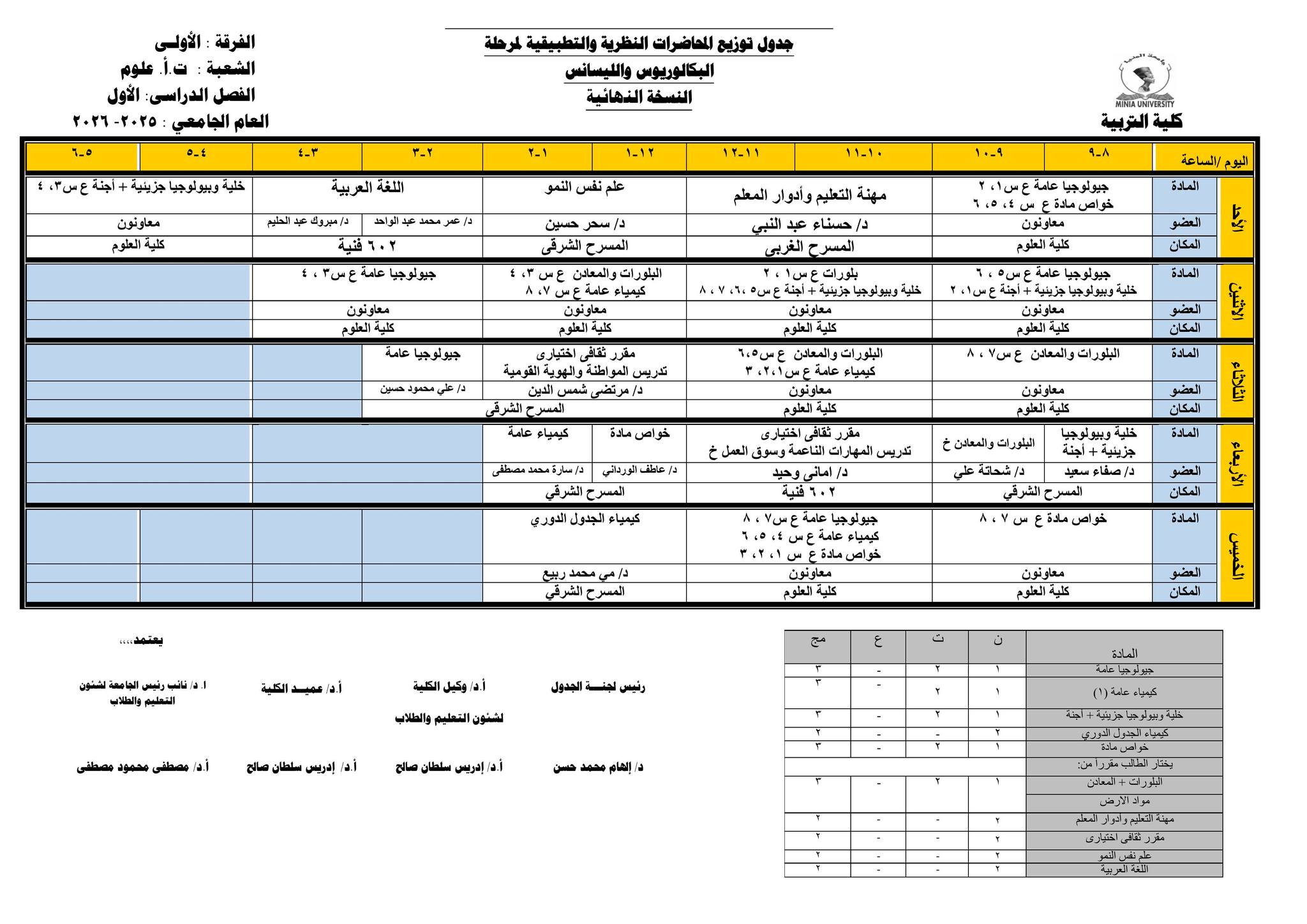 Chers étudiants de la première année, Voici les horaires des cours théoriques et pratiques du premier semestre pour l'Année Académique 2025/2026.