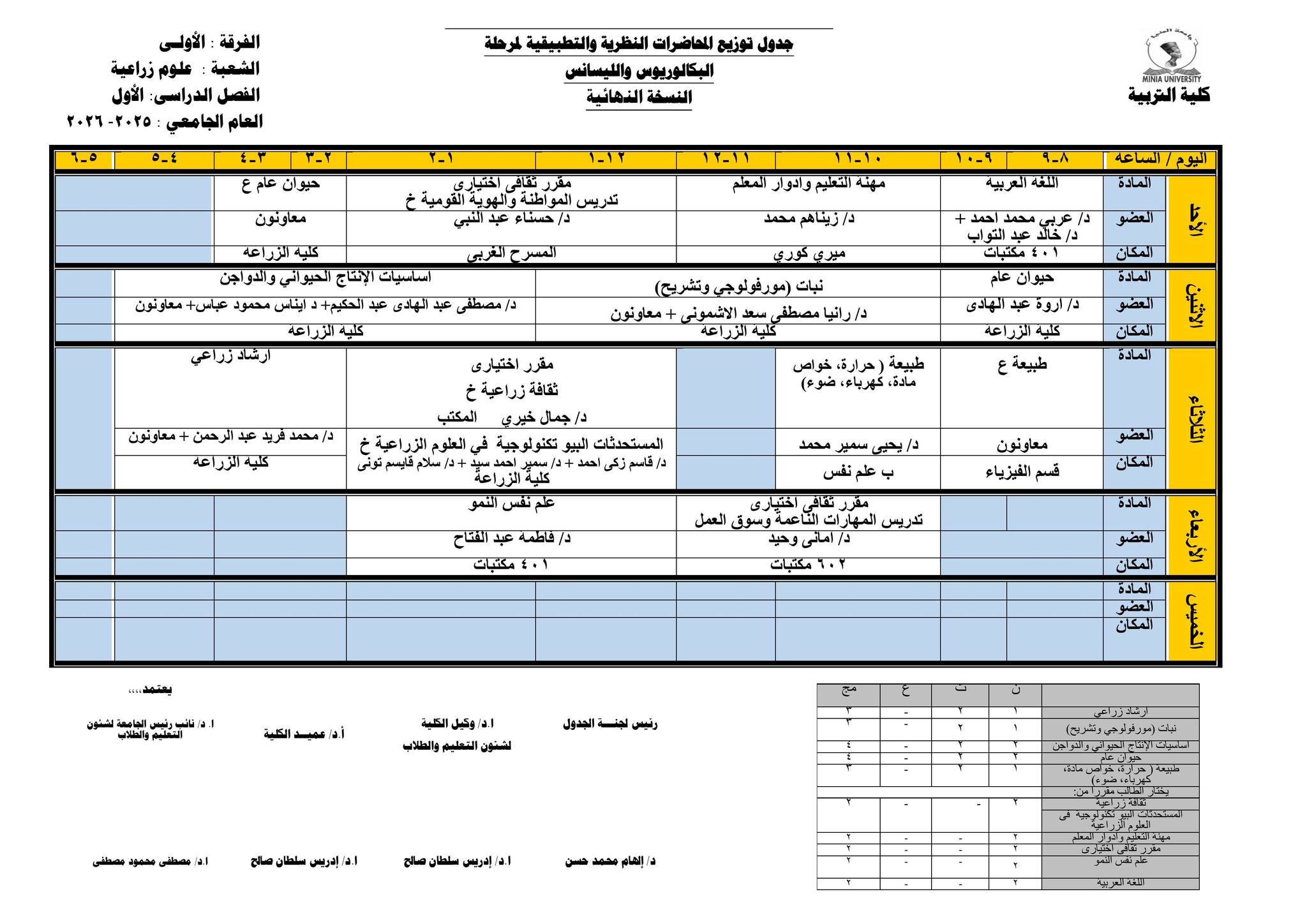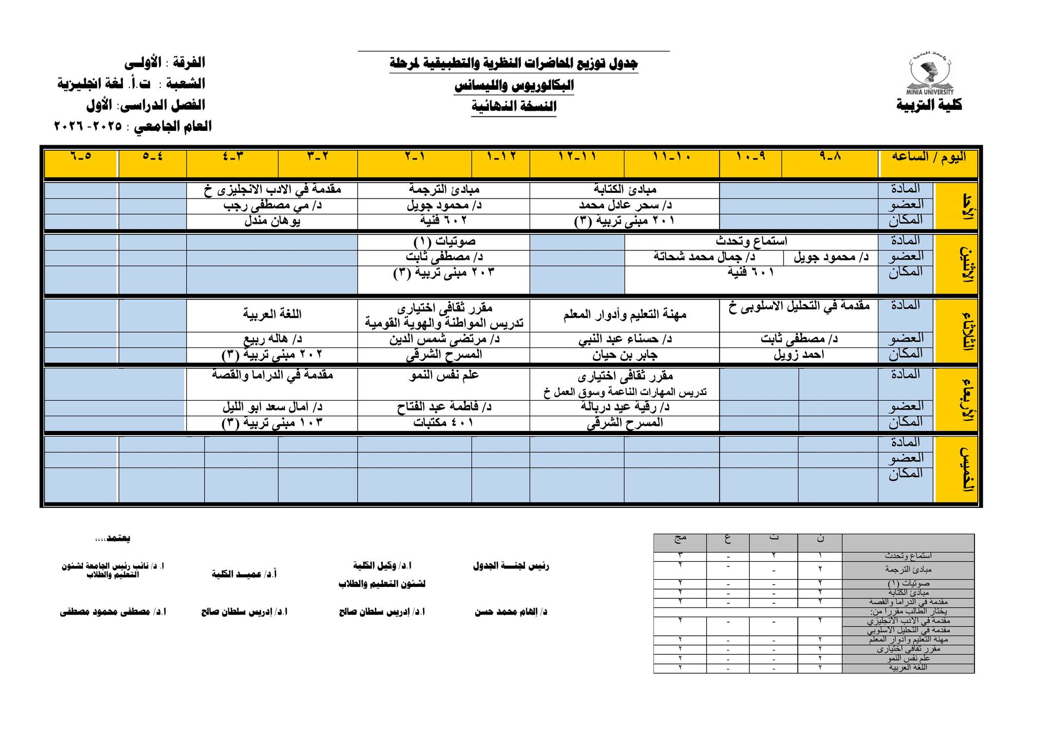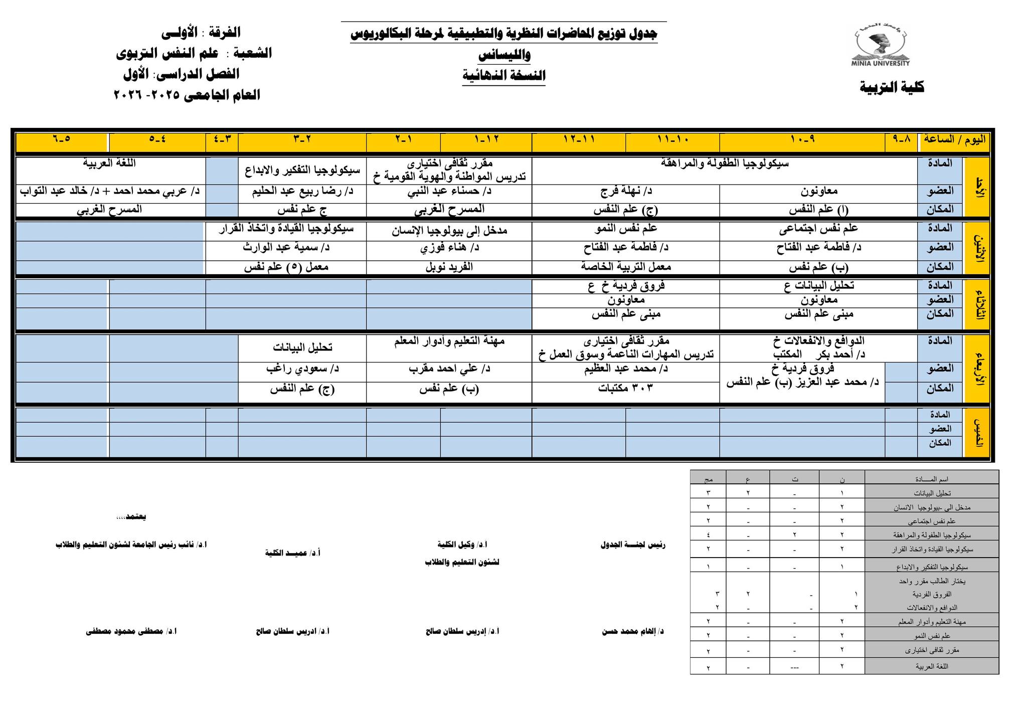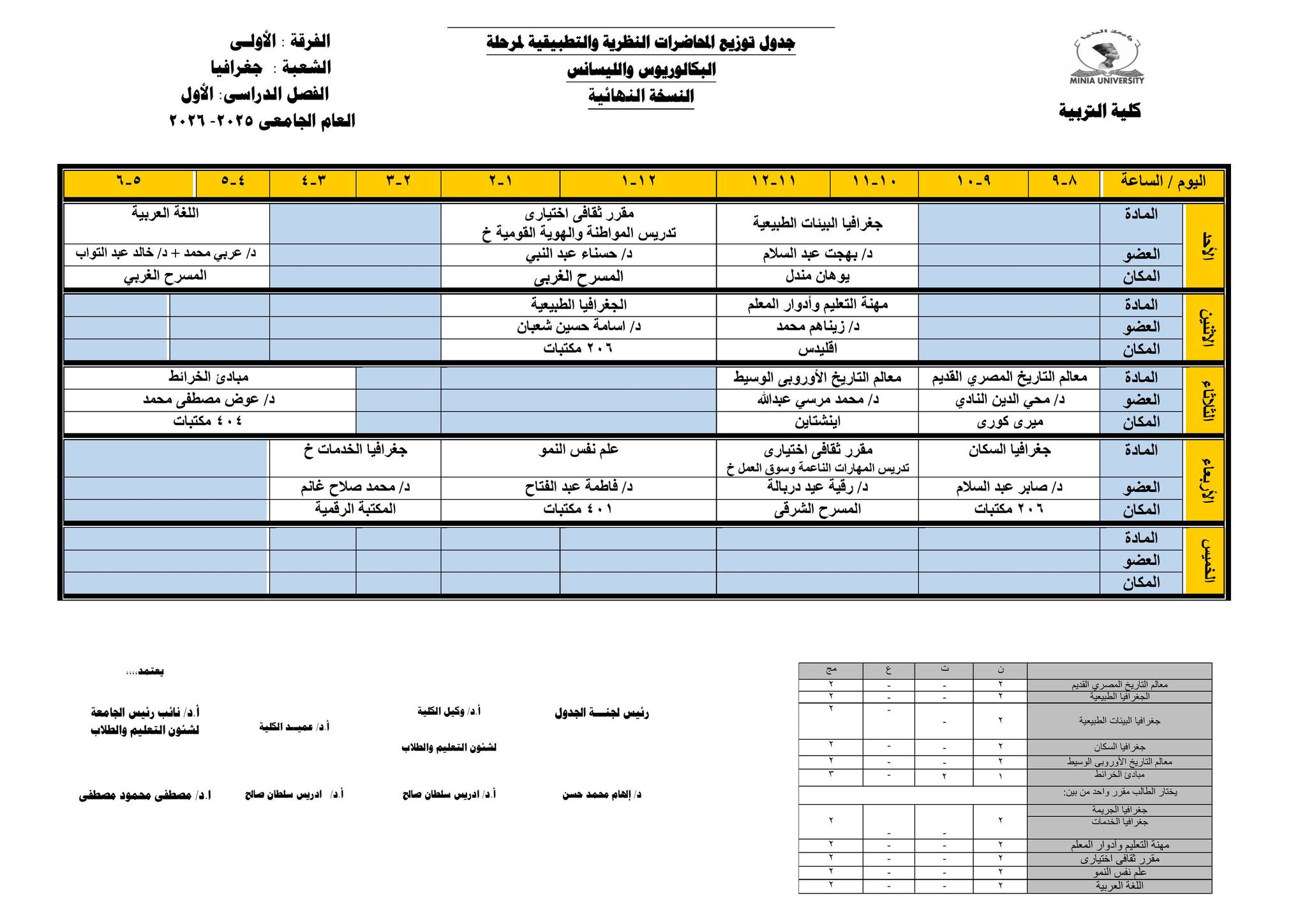 Chers étudiants de la première année, Voici les horaires des cours théoriques et pratiques du premier semestre pour l'Année Académique 2025/2026.