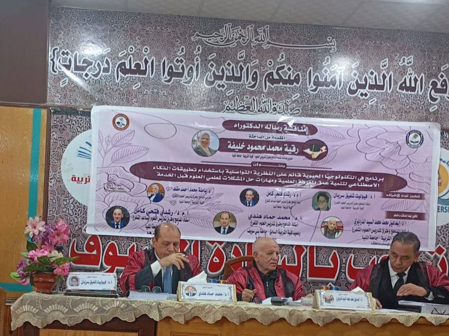 Le Mardi 31 Mars 2026, Soutenance de la thèse de Doctorat présentée par la chercheuse/ Ruqaya Muhammad Mahmoud Khalifa, s'est tenue à 11h00 à la salle de discussions à la Faculté au bâtiment de la bibliothèque au premier étage, et le jury de soutenance a octroyé la chercheuse le grade de Doctorat (la spécialisation: Curricula et Méthodologie - Sciences).