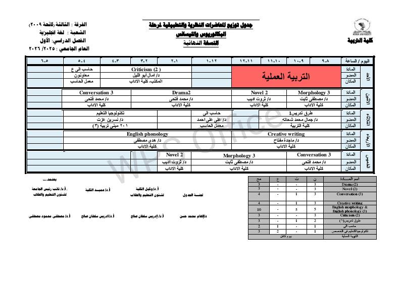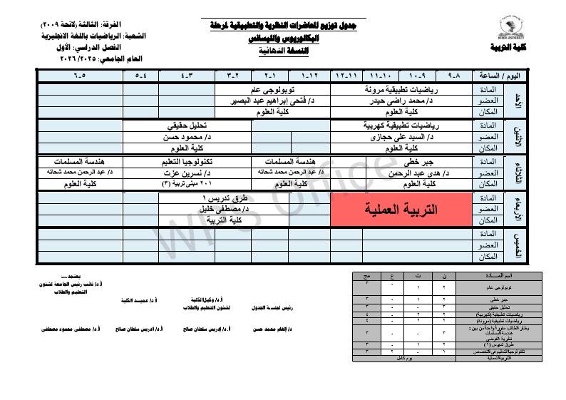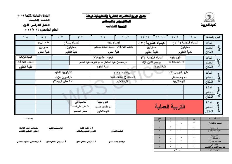 Horario académico para estudiantes de tercer año (reglamento 2009)