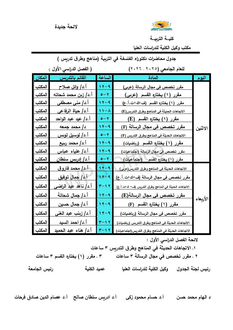 Horario académico para estudiantes de Doctorado en Educación 2025/2026