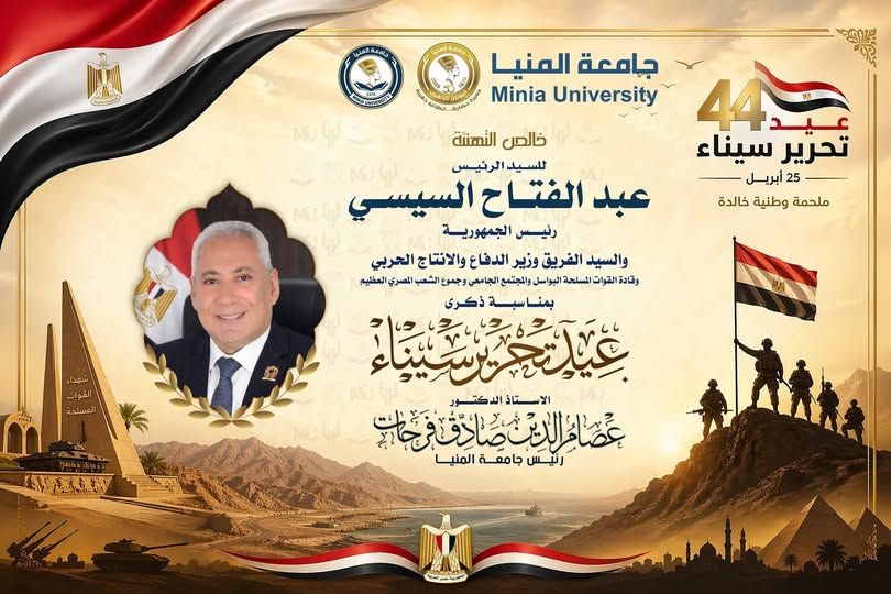 رئيس جامعة المنيا يهنئ الرئيس السيسي بالذكرى الـ44 لتحرير سيناء