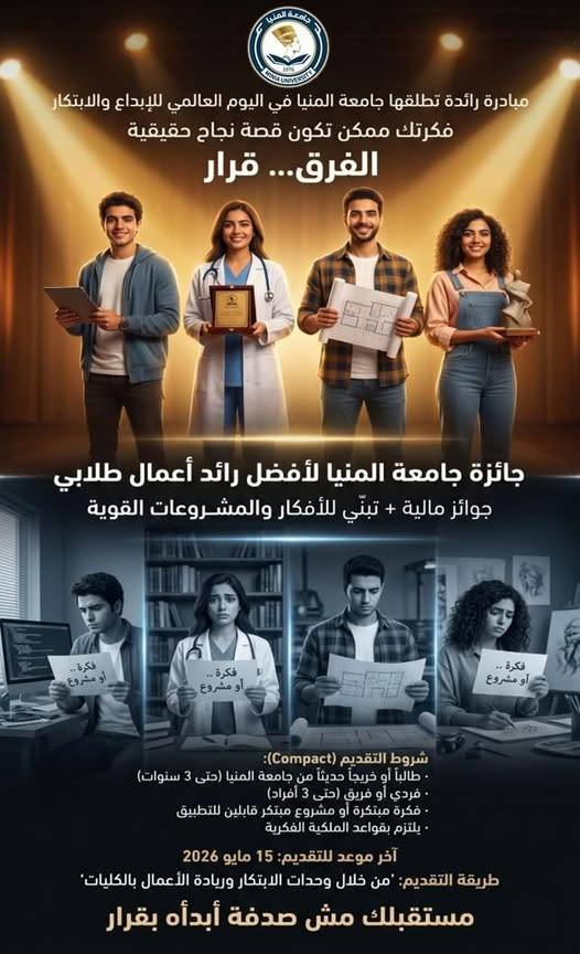 اعلان جائزة جامعة المنيا لأفضل رائد أعمال طلابي