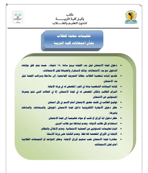 تعليمات مهمة للطلاب بشأن امتحانات كلية التربية